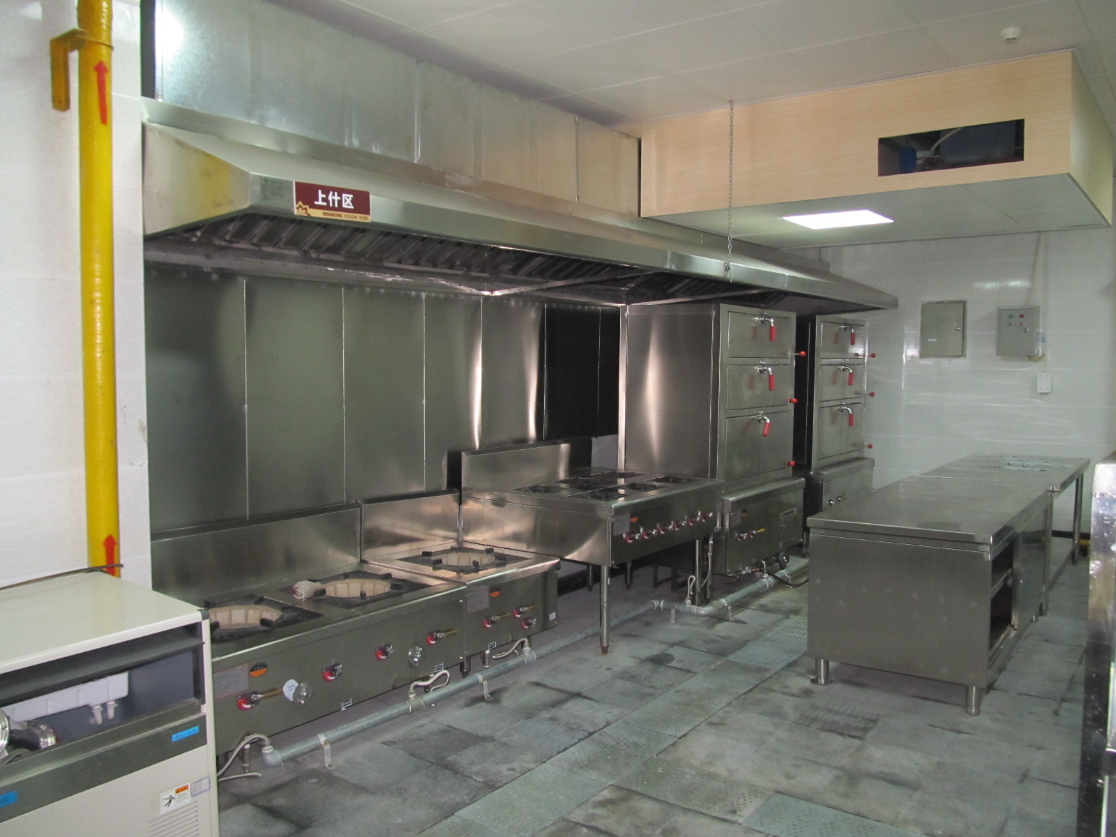 公司拥有先进的生产设备,雄厚的技术力量,严格的质检手段,专业为宾馆、酒店(楼)、饭店、企事业单位食堂厨房设计、制造、安装各式高效节能不锈钢灶具设备、排烟通风设备、调理设备、制冷保温设备、消毒设备、环保设备等十几个系列,上千个品种的设备,已形成完整的厨房设备配套生产体系。